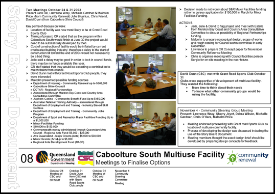 Storyboarding in this context was developed as a way to document the development of the Palm Island Youth Centre in 2003. It was important to have clear transparent communication mechanism to keep the local community and government stakeholders working on the same process and toward the same goal. Our fear was that the if the government stakeholder meetings were not kept transparent then the process would not be accountable and therefore become another disempowering process for Palm Island people.
